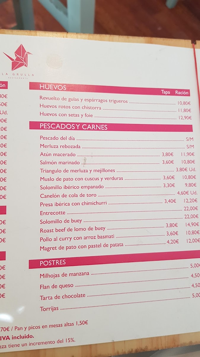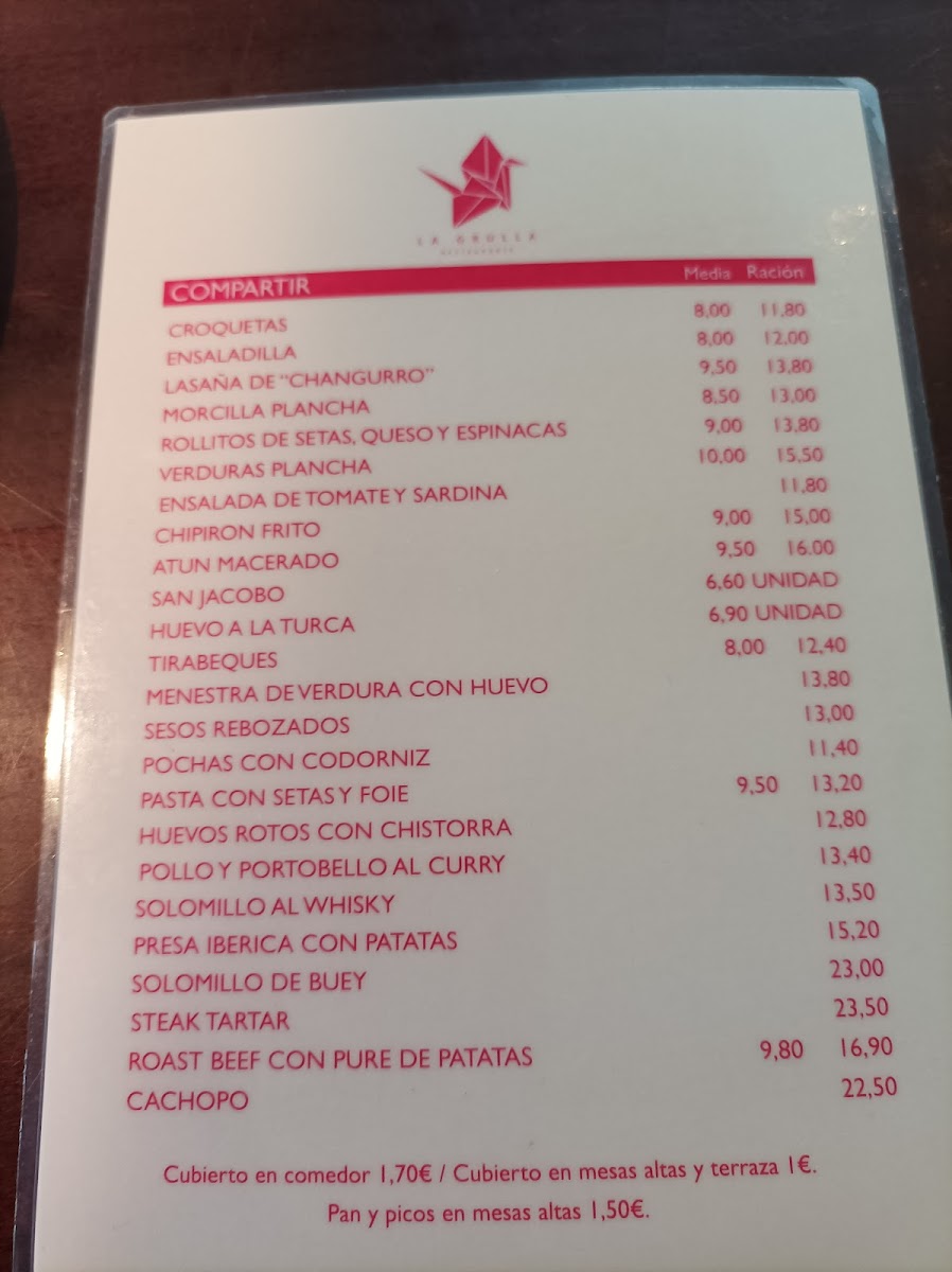 La Grulla Menu